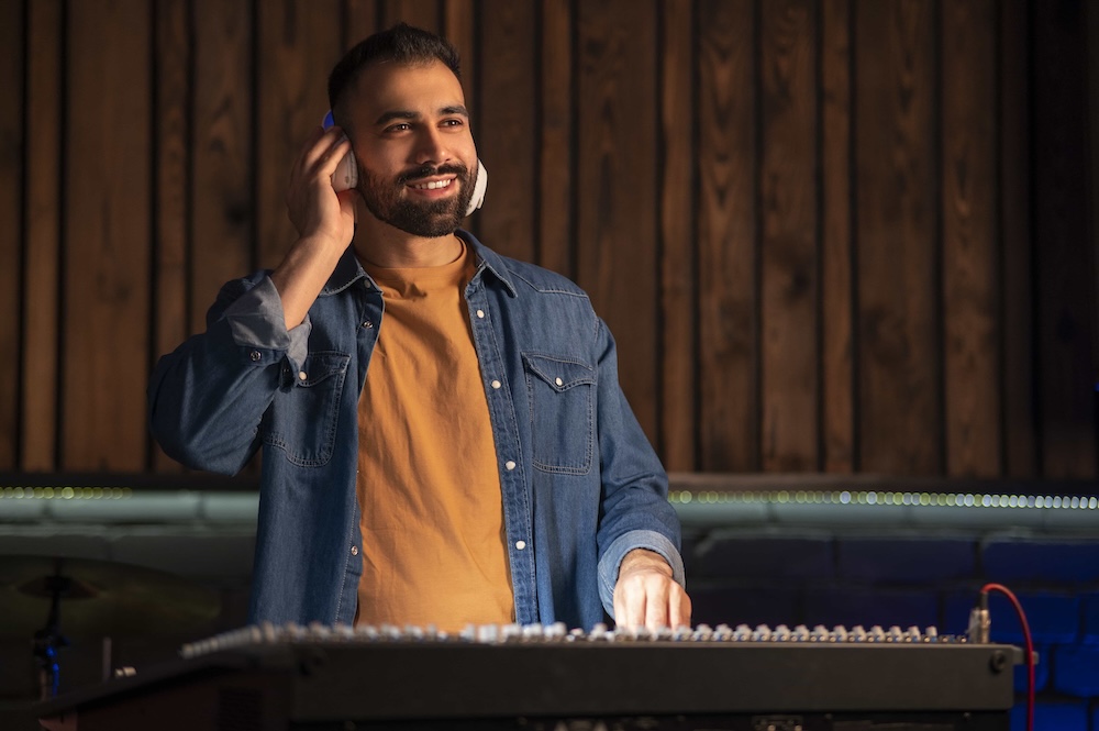 - Règle le mix de retour sur la console de retours et le mix de salles à la console de mixage